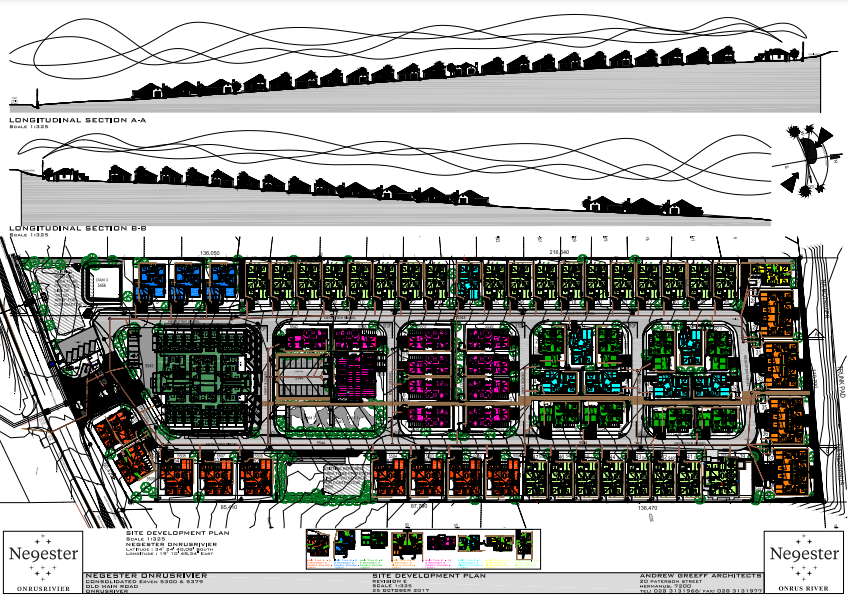 Onrusrivier Suid bestaan uit 73 vol-titel eiendomme met n deel-titel sorgsentrum van 50 wooneenhede.